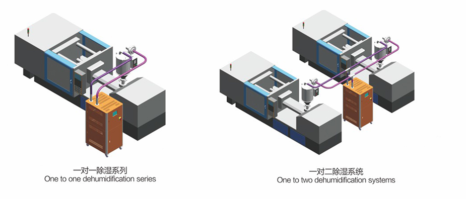 ● 一臺除濕機可以搭配數(shù)個獨立干燥料斗使用。